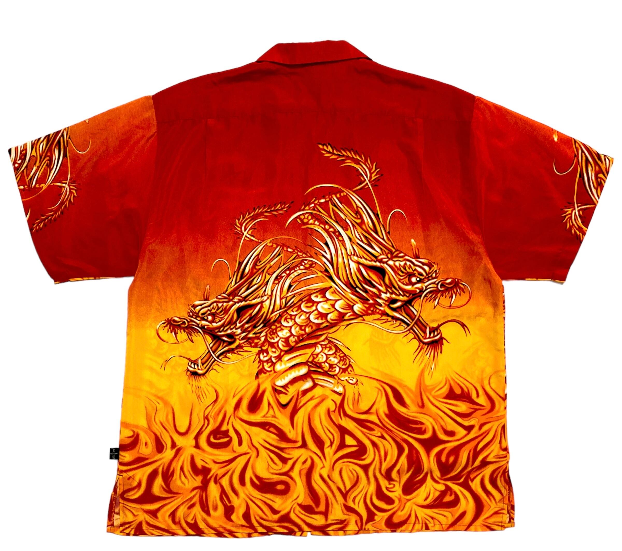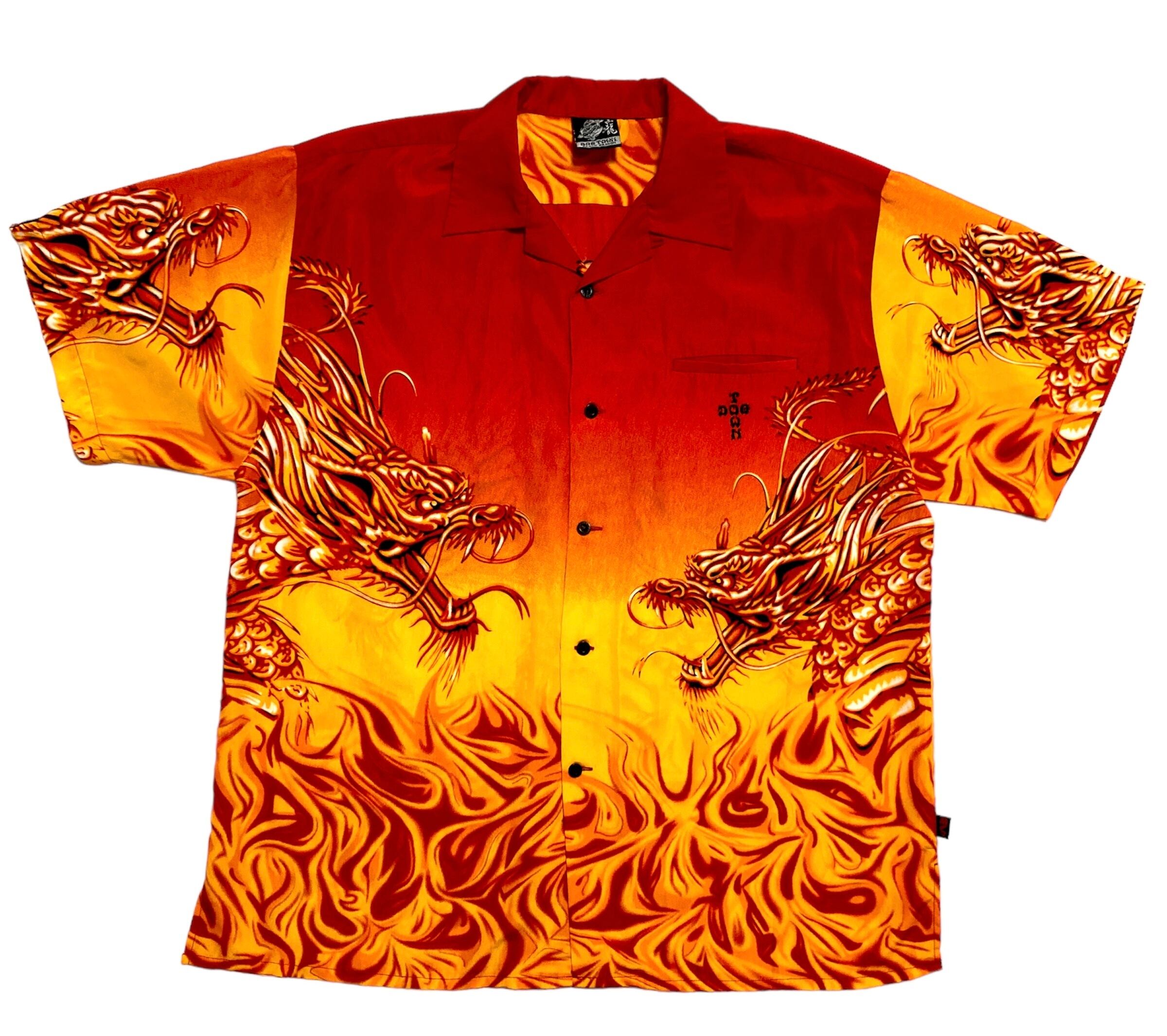 【90s DOG TOWN】Dragon Fire pattern open collared shirt